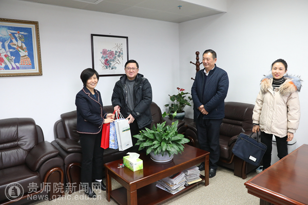本网讯 新春佳节将至,受省委常委龙长春同志委托,贵州省委统战部副部长,省文史馆党组书记、馆长王茂爱及有关科室同志一行来到YABO鸭脖慰问优秀党外代表人士韦维。期间,双方亲切交谈,王茂爱同志仔细询问了韦维同志的工作及生活情况,表达了省委、省政府对学校及优秀党外人士的问候,并代表省委统战部向韦维致以良好祝愿和新春的祝福。校党委书记石培新,党政办、宣传部相关负责人参与慰问座谈。