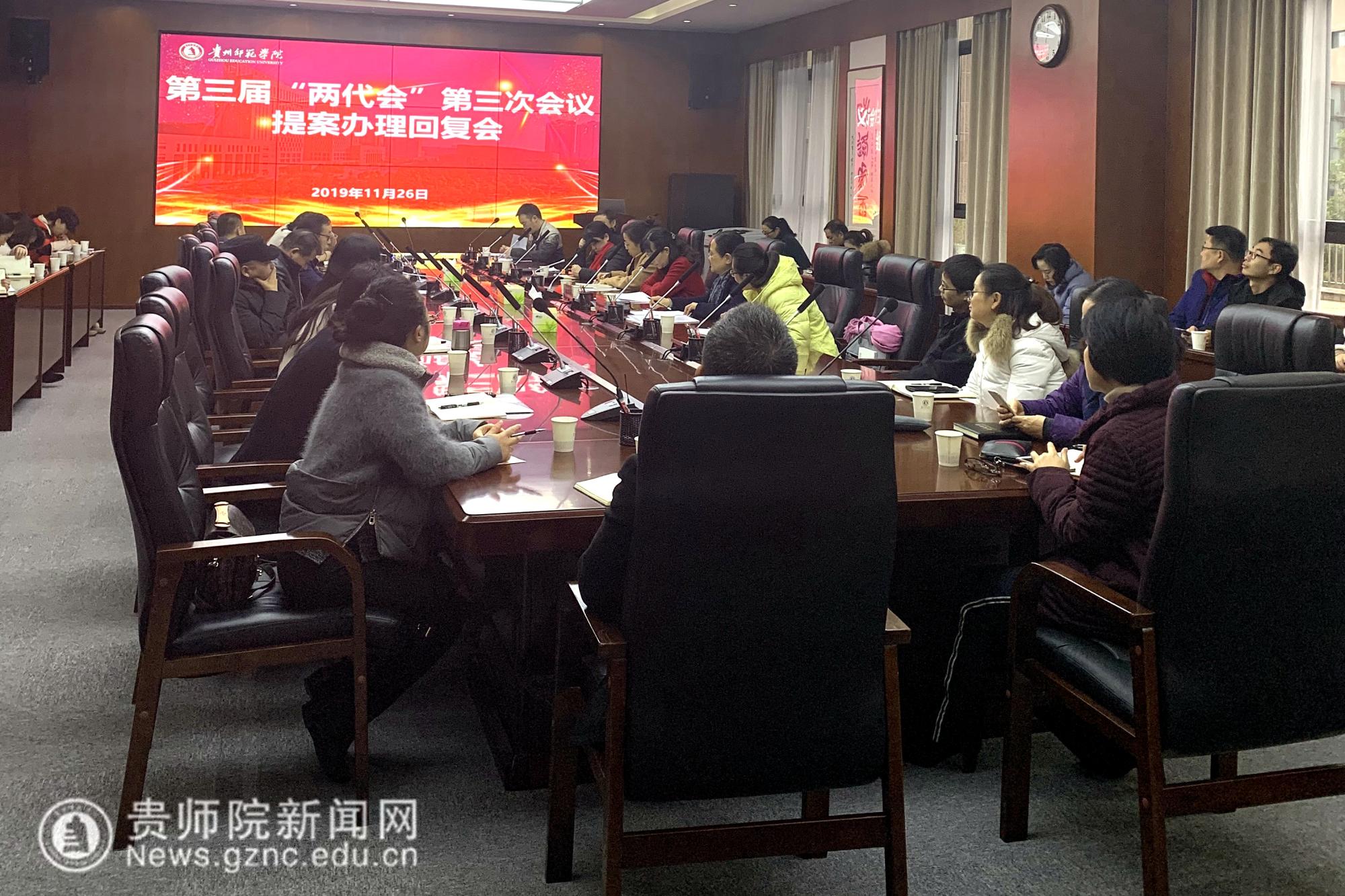 本网讯 11月26日,为了提高YABO鸭脖“两代会”提案的办理效率和质量,落实好教职工代表大会民主管理制度,校工会在信息楼二楼会议室组织召开第三届“两代会”第三次会议提案办理回复会。校党委委员、副校长郭文出席,提案工作委员会主任伍燕、提案人、提案承办部门负责人、校工会全体人员、提案工作委员会成员、各基层工会主席参加会议。会议由工会主席许丽君主持。