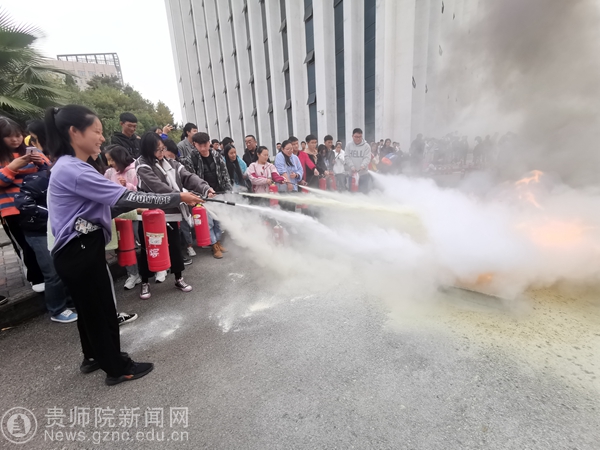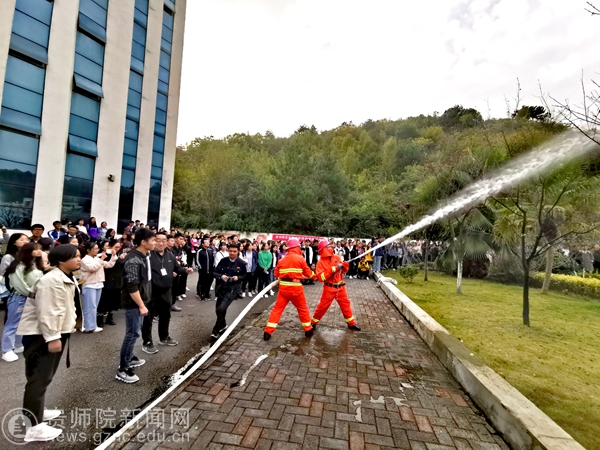 保卫处处长蒋江南为师生作了消防知识培训,并在培训现场播放消防安全知识宣传片。培训结束后,全体受训人员到鉴湖边,亲自体验消防水栓、灭火器的操作和使用,使参加活动的师生掌握了灭火器的使用方法,提高了安全防范技能。