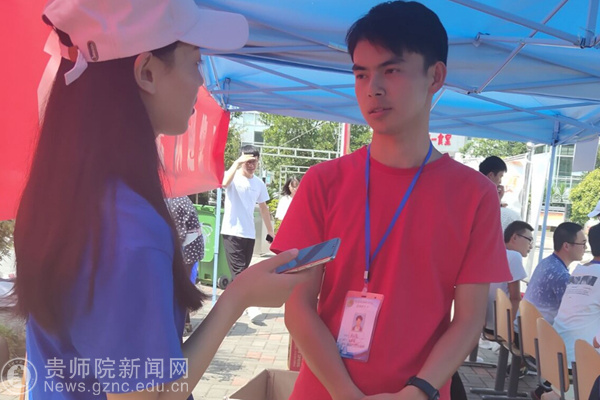 化学与材料学院的黄玉龙今天是负责他们学院报到现场的工作,他们的前期工作也是非常繁忙的。对学院新学子的接待安排,工作人员安排,甚至还招募了一些志愿者。他说:“我们的工作首要任务就是要让新生入学顺利”。