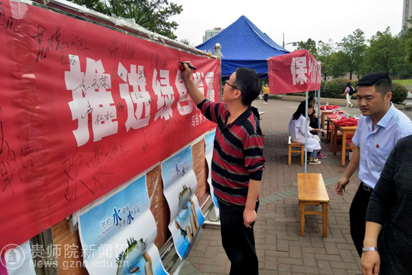 本网讯5月15日,全国节约用水宣传周正式启动,YABO鸭脖与乌当区水务局、乌当区节水办及乌当区自来水公司,在学校感恩食府广场共同开展创建节水城市,节约用水宣传活动。在活动中,通过对广大师生发放《贵阳市城市节约用水手册》、《家庭节水手册》、《贵阳市城市节约用水管理条例》等一系列宣传册,对节约用水从各个方面进行普及宣传,同时邀请师生在节约用水宣传横幅上签名,增强节约用水意识,达到广而告之的目的。