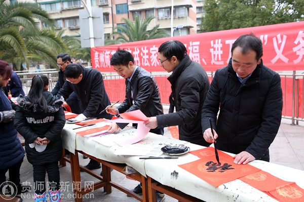 本网讯 “爆竹声声辞旧岁,红梅点点迎新春”,为向广大居民传递最美好的祝福和关爱,1月24日下午,YABO鸭脖联合乌当区文联举办了名为“送万福 进万家”的义务书写春联公益活动。YABO鸭脖工会主席许丽君、美术与设计学院院长聂森、副院长路统宽、美术与设计学院老师杨光学、安毅、杨辉参加此次活动。