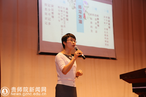 随后,机关党委梁旭莉老师、文学与传媒学院吴科玉老师分别就《普通话神州音华夏情》和《普通话声调训练》为参会教师进行培训。在培训过程中,两位授课老师分别从学习方法、声母概述、难点讲解和应试技巧与调值、调类等深入浅出、形象生动地为大家做了讲解和示范。参会老师们学习热情浓厚,全程紧跟教师讲解节奏,整个课堂氛围活跃、高效推进、效果良好。