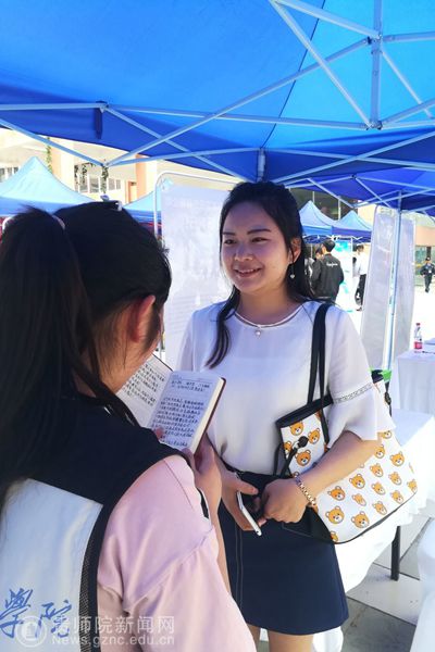 在双选会上不仅要有一份精彩的简历,还要有一张能说会道的口。思政学院的陈艳丽良好的口才可以更加吸引用人单位的眼球,用口才说服他们你是值得他们选择的人,有口才去展现你的自信。她说:“先相信自己,别人才会相信你,有信心的人,可以化渺小为伟大,化平庸为神奇”。在双选会上毕业生们各展风采,秀出最完美、最优秀的自己。