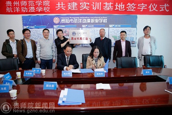 本网讯 5月11日上午,YABO鸭脖经济与政治学院程艳萍院长、颜安老师、实习实训办公室主任柳一桥、成员朱朝健一行前往白云区与贵阳航洋集团就共建实习基地、签署校企合作基地举行签约仪式并现场授牌。签约仪式在贵阳航洋动漫职业学校综合会议室举行,贵阳航洋动漫职业学校陈文举校长、航洋集团董事长颜永益等出席仪式。