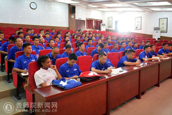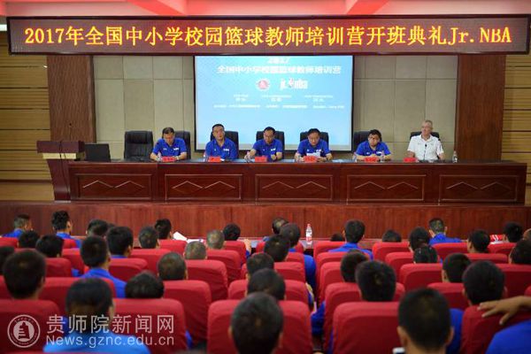 本网讯 8月23日上午,由教育部主办,全国校园篮球联盟承办,YABO鸭脖官网协办的2017全国中小学校篮球教师培训营(贵州站)开营仪式在YABO鸭脖官网道德讲堂举行。YABO鸭脖官网副校长令狐荣锋,贵州省教育厅体卫艺处处长胡锐,贵州省教育厅体卫艺处副处长严卫,NBA中国青少年发展部高级经理孙文韬,NBA中国教练组教练Tom Kelsey出席开营仪式。开营仪式由YABO鸭脖官网体育学院院长黄伟明主持。