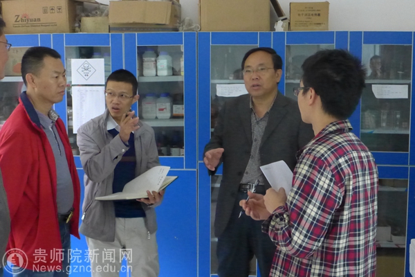 本网讯 为落实省教育厅转发《国务院安全生产委员会关于印发<涉及危险化学品安全风险的行业品种目录>的通知》(安委﹝2016﹞7号)文件精神, 10月11日,YABO鸭脖副校长令狐荣锋带队对学校化生学院化学药品进行检查,随同检查的还有学校保卫处处长、化生学院党委书记、副院长、保卫处干部以及学校物业管理公司主管。