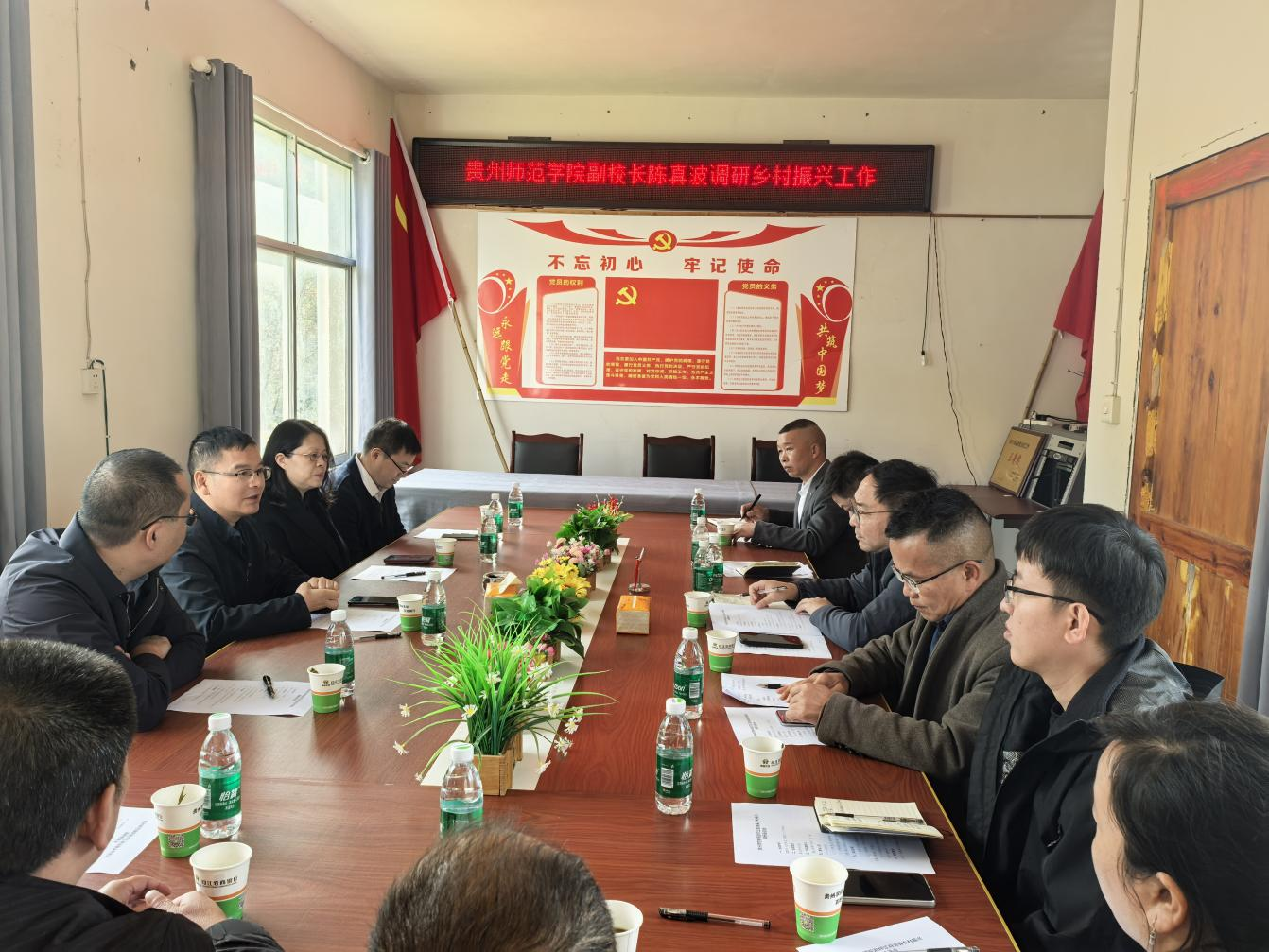 随后,陈真波主持召开调研座谈会,驻村工作队队长詹峰汇报工作队情况,冯进、朱昌来等驻村教师汇报具体工作开展情况。马克思主义学院院长兼党委副书记金凤指出,学院将充分发挥自身优势,竭力做好后勤保障工作,以实际行动支持和帮助驻村同志的工作。在听取大家的汇报后,陈真波结合格山村实际,就如何做好下一步的驻村帮扶工作提出具体要求。陈真波强调,马克思主义学院将充分发挥在党建和理论研究方面的学科与人才优势,持续为格山村提供智力支持。同时,驻村干部要聚焦乡村治理、产业发展和民生改善,把理论转化为实践,用脚步丈量土地,用真情温暖民心,在实干中诠释初心使命,奋力书写新时代乡村振兴的生动篇章。