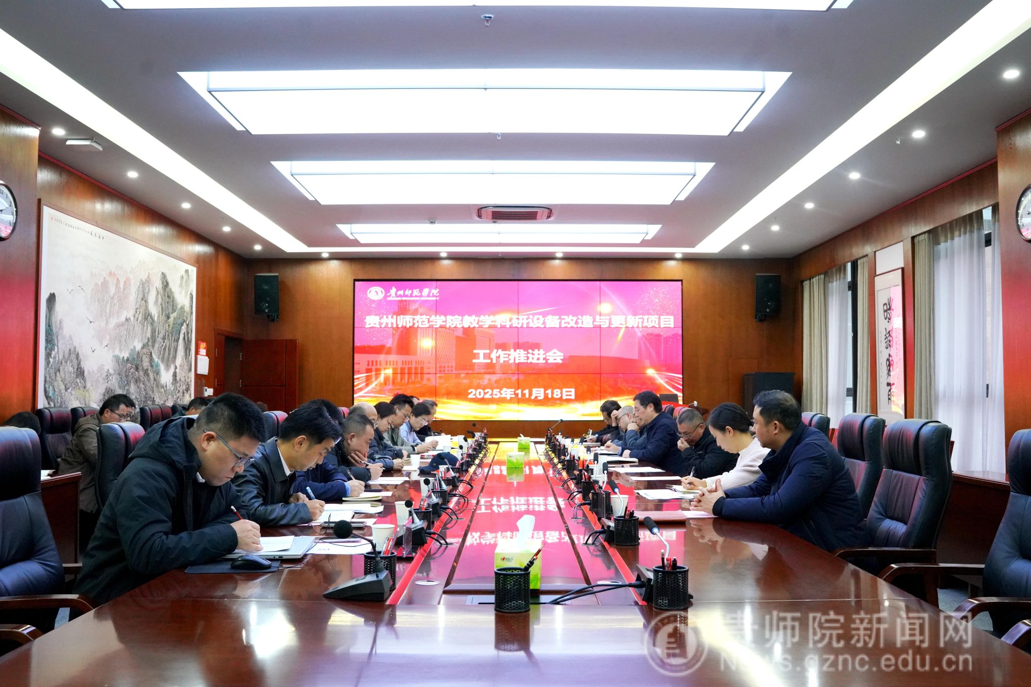 本网讯 11月18日,学校在信息楼二楼会议室召开教学科研设备改造与更新项目工作推进会,校党委常委、副校长(正厅长级)赵守盈、校党委常委、副校长罗光杰出席。设备改造与更新领导小组办公室主任、国有资产管理处处长赵刚主持会议。