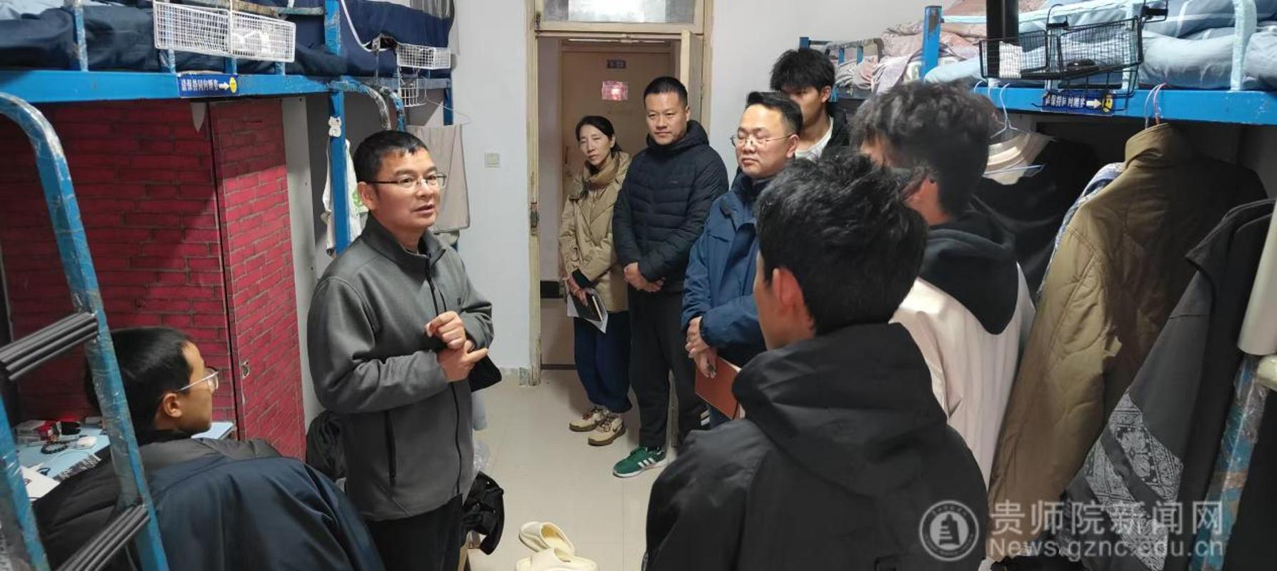 本网讯 为深入贯彻党的教育方针,落实立德树人根本任务,11月19日中午,校党委常委、副校长陈真波率领体育学院汤士波、刘华伟、刘丽娟一行,深入诚园男生宿舍进行走访调研,实地了解学生思想、学习、生活状况,送去学校的关怀与温暖。