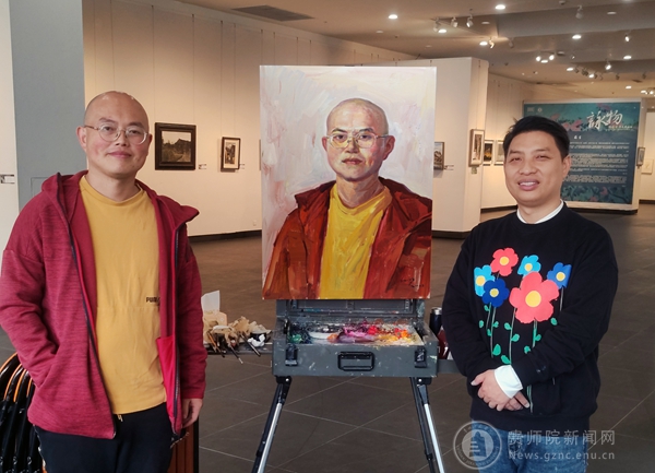 观展结束后,廖江华老师画画家吕兰堂老师,大家围着廖江华老师,期待着在他现场创作环节学习到新知识,有的凝心观赏,有的拿起手机把作画过程记录下来。廖江华老师一边作画一边从构图、颜色、笔触、油画材料技法与人物特征与情感表达等方面和大家分享经验。