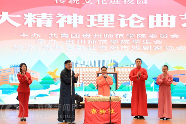 本网讯 为传承中华优秀传统文化,抓好党的二十大精神青年化阐释宣讲,营造良好校园文化艺术氛围,进一步丰富YABO鸭脖的精神文化生活,提高大学生的艺术修养,引领大学生弘扬先进文化和中国民族文化。4月25日,由校团委主办,校学生会承办的“春黔社”传统文化进校园——党的二十大精神理论曲艺宣讲专场演出在综合实训楼一楼报告厅顺利举行,演出吸引了全校近800余名师生现场观看。