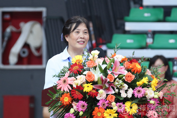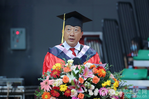 商学院院长程艳萍教授在发言中寄语广大毕业生,面对今天的中国和世界,广大学子必须超越昨天的自己;她希望同学们要有面对挫折的勇气,要有不畏风雨的底气,要保持同学们身上的书卷气。