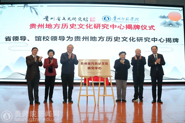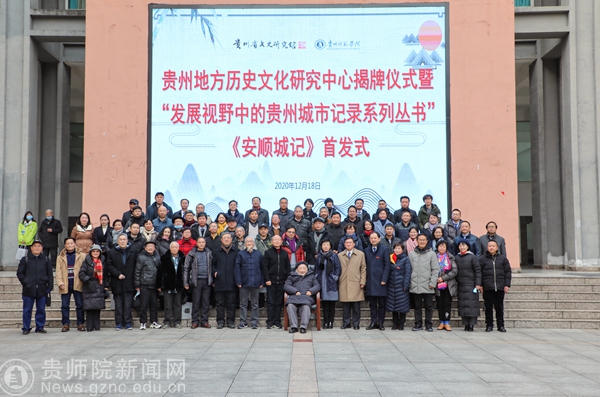随后在逸夫楼演播厅还举行了贵州地方历史文化研究中心挂牌仪式和“发展视野中的贵州城市记录系列丛书”《安顺城记》首发式。在热烈的掌声和期待的目光中,何力、龙超云、顾久,钱理群、王茂爱、石培新为贵州地方历史文化研究中心揭牌。在欢快的音乐中,何力、龙超云和王茂爱、石培新共同为贵州地方历史文化研究中心名誉主任钱理群、顾久,学术委员会主任张新民,以及学术委员会其他成员共16位同志颁发了聘任证书。