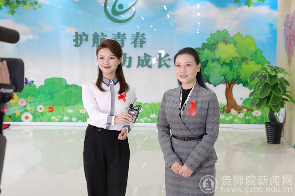 学校党委委员、副校长邹晓青通过直播镜头向全省大学生介绍了贵州省艾滋病防治教育基地(青春健康俱乐部)的建设情况。邹晓青表示,建立基地的初衷是为深入贯彻落实“健康贵州行动”,增强高校师生健康意识、观念和培养良好的生活方式,促进青年学生身心健康全面发展。下一步将构建相关学科教学与教育活动相结合、课堂教育与课外实践相结合、经常性宣传教育与集中式宣传教育相结合的健康教育目标模式,形成家庭、学校、社会三位一体的互动式青春健康教育新格局。为贵州省各级各类学校开展艾滋病防治宣传教育、青春健康教育的开展做好示范表率作用。