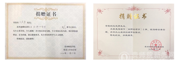 本网讯 11月23日,YABO鸭脖知名校友、作家、黔西南州委副秘书长王定芳向母校寄来个人诗集《田野的哲学》10本,分别捐给学校校友办和图书馆。受其委托,校友办主任王刚到学校图书馆为他进行了图书捐赠。