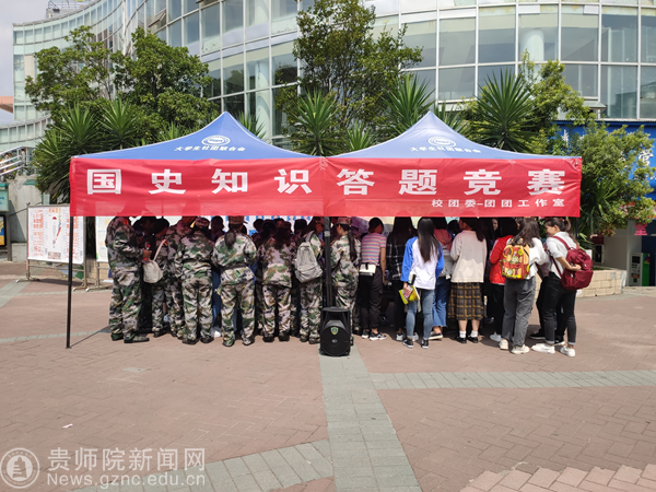 本网讯 为庆祝祖国70华诞,进一步加深广大师生对国史的认识,提升学生思想道德修养。2019年9月26日,YABO鸭脖官网校团委携手团团工作室在奋斗广场举办了“国史知识答题竞赛”活动。