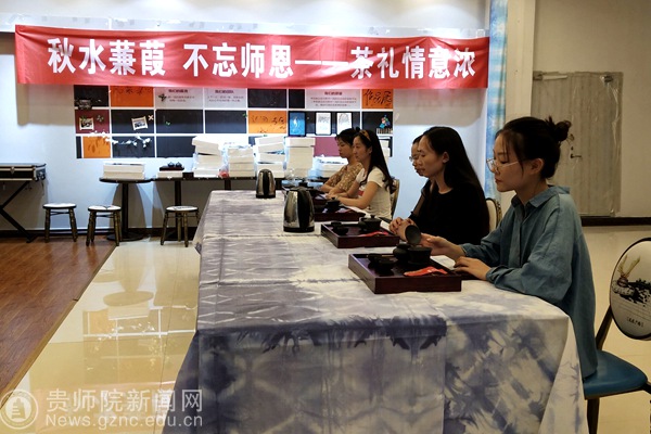 本网讯 9月11日下午,由校团委承办的“秋水蒹葭 不忘师恩——茶礼情意浓 ”庆祝第35个教师节茶艺活动在大学生文化创意基举办,本次活动邀请到了地理与资源学院副教授俞洪燕老师为大家讲解茶的知识并学习茶艺。