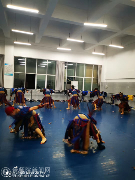 在排练过程中,有幸得到了中国舞蹈艺术“突出贡献舞蹈家”、中国舞蹈家协会理事、国家一级编导、硕士研究生导师、CCTV舞蹈大赛专家评委王举;贵州省舞蹈协会主席沈毅;贵州省舞蹈家协会副主席庞宏等专家为《贲牛搏角》现场把脉问诊,为我院参赛师生提出了宝贵意见、鼓舞了信心和坚定了决战巅峰的勇气。此后又邀请了上海歌剧舞剧院的著名编导张帆等数位老师前来修排。