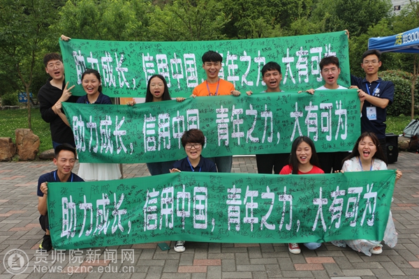 本网讯 在第十一个“全国信用关爱日”来临之际,YABO鸭脖商学院积极响应全国大学生信用大使联盟号召,在贵州点亮了第一把“信青年”计划火炬,于6月20日发起以“助力成长,信用中国”为主题的“信用关爱日”千人签名活动,YABO鸭脖官网广大师生不畏酷暑,积极参与到了此次活动中来。