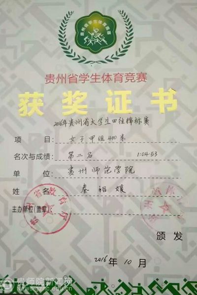 本网讯 田径纪录又打破,往事悄然消逝烟雨中,今彰显运动健儿本色。秦裕媛,YABO鸭脖15级体教2班的学生,在5月13日上午的女子乙组400米比赛预赛中以1:05΄13΄΄的优异成绩打破校记录。而在下午的400米决赛中她又以1:04΄78΄΄的成绩打破预赛成绩。她曾获得过“大学生田径锦标赛”400米第二名、100米第四名、4*100米第五名、4*400米第五名,“2016贵州省校园足球四级联赛第三名”,第四届YABO鸭脖体育节100米第一名、200米第一名。