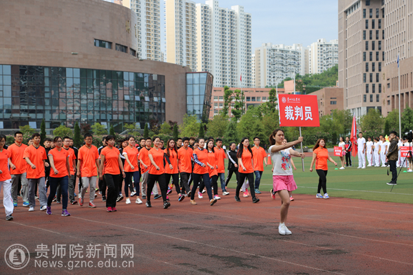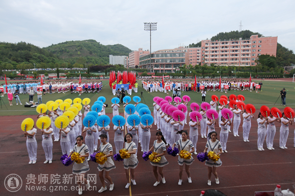 地旅学院方阵突出的是竞技与美的结合。动感的舞姿加上红、蓝、黄、绿四色纸扇,为体育节增添了活力与光彩。