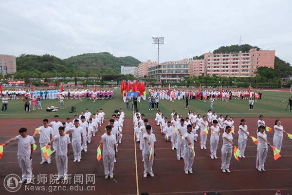 体育学院全白的运动服代表体育人不变的初衷,手中挥动的彩旗指向前进的目标,最具活力的他们为体育节带来了能量和热情。