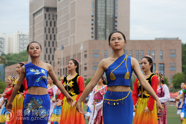 身着彝、藏、傣、维吾尔四族少数民族的服饰,教科院的女生们身姿绰约,神采奕奕,表现了各民族舞蹈的魅力以及她们的活力四射。最后一首《爱我中华》展现了她们民族大团结的希望。