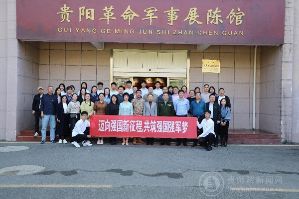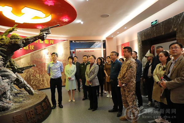 贵阳警备区动员处处长唐田陪同参观了贵阳革命军事展陈馆,YABO鸭脖官网马克思主义学院、体育学院、音乐舞蹈学院、美术与设计学院党委班子成员、教师党支部教师党员代表参加了本次活动。