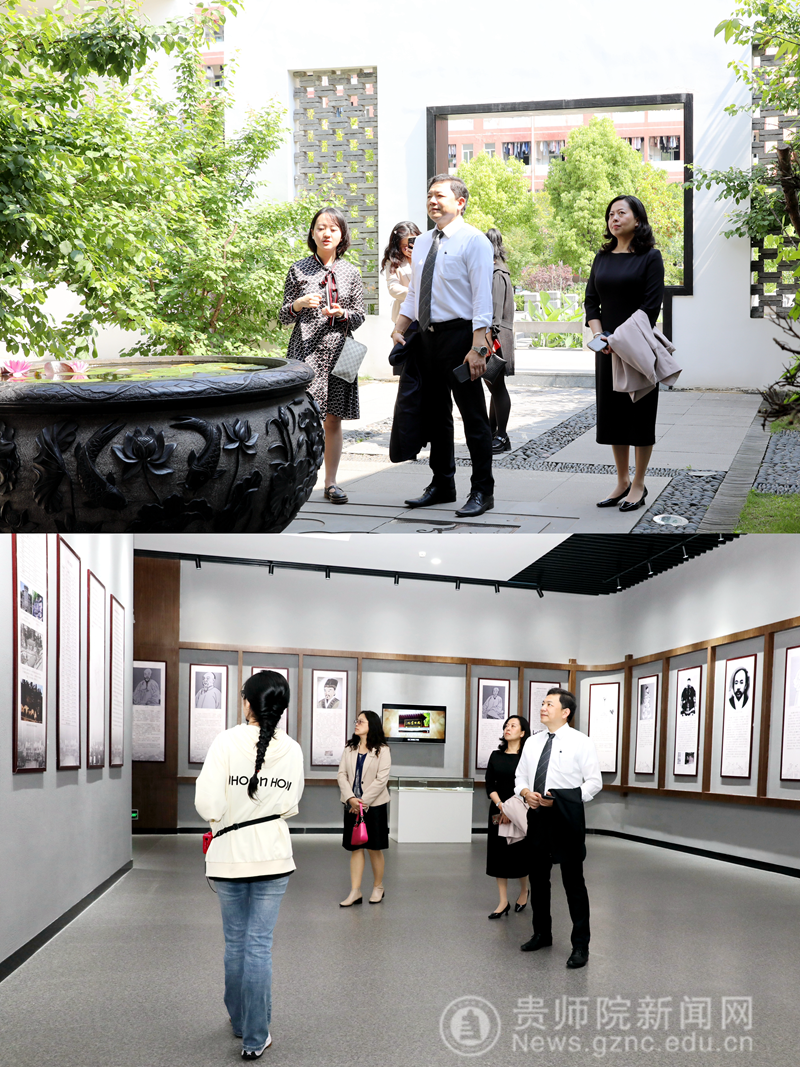 对外交流合作处、历史与档案学院有关负责人陪同台湾客人参观了YABO鸭脖的贵州教育史馆、印山书院等学校特色考察点。