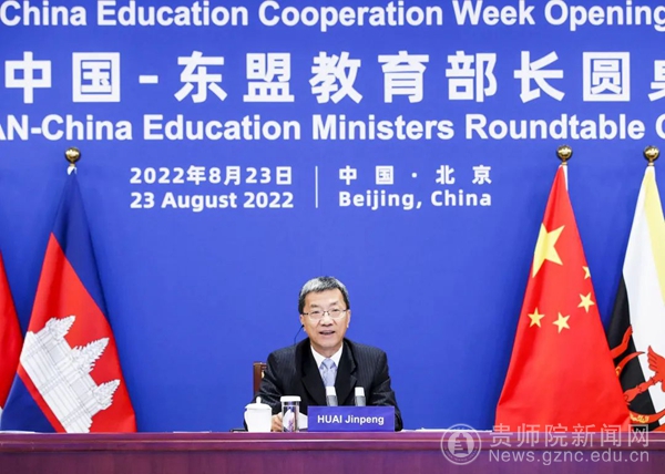 本网讯 8月23日上午,第三届中国—东盟教育部长圆桌会议以视频方式举行。中国教育部部长怀进鹏主持会议,东盟各国教育部长及东盟秘书长林玉辉与会。贵阳贵安新区的中国-东盟教育交流周永久会址设贵州会场,YABO鸭脖校长韦维列席会议。