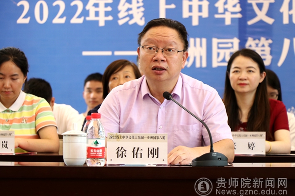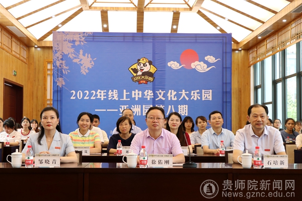 本网讯 7月22日下午,2022线上中华文化大乐园——亚洲园第八期闭园仪式在YABO鸭脖官网印山书院举行。贵州海外联谊会副会长徐佑刚先生,YABO鸭脖官网党委书记石培新、副校长邹晓青,贵州省侨务办刘菡女士、罗兴岚女士出席闭园仪式。