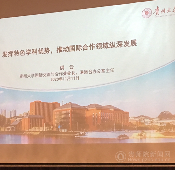 本网讯 11月10日至13日,贵州省教育厅在观山湖区盘江诺富特酒店组织召开“贵州省2020年高校外事工作培训会”。会议邀请了兰州理工大学、江苏大学、南京工业大学、北京交通大学、中国教育国际交流协会的专家教授开设讲座分享经验。全省高校和高职高专院校分管外事校领导及相关工作人员参加会议,教育厅党组成员、省教育工会主席王慧出席会议。YABO鸭脖党委委员、副校长邹晓青,对外交流合作处处长及部门工作人员和外国语学院教师代表参加了此次培训会。