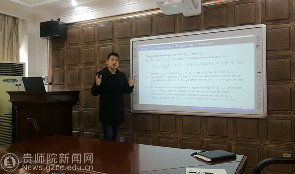 许弘雷教授的学术报告主要介绍了一种新的基于事件触发的混合控制方法,该方法适用于有向拓扑和基于拉的多智能体网络一致性问题。学术报告结束后,许弘雷教授与我院教师进行交流,他提出教师集体要注重团队合作,讲述了团队合作的重要性,对于教师们的提问,许弘雷教授都一一做了详细的解答。并且分享了关于发表SCI等高水平论文的经验与方法。