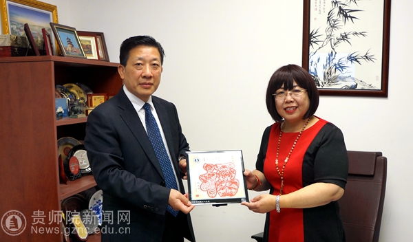 余维祥与对方副校长Kevin Colaner互赠礼物