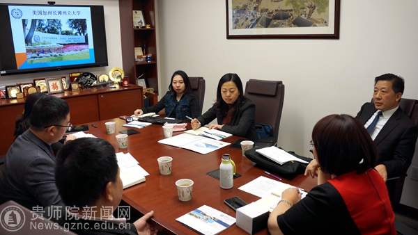 12月22日,余维祥一行对加州州立大学长滩分校(California State University,Long Beach)进行访问。该校区是加州州立系统里的第二大校园,其注册学生数在加州排名第三,近三万人。大学因其杰出的学术成就而连续两年在《美国新闻与世界报导》的年度“全美最佳大学指南”中入榜。首先参观校园,调研教学和后勤服务设施,并与该校国际培训部主任Heidi Zhang及相关人员进行了座谈,就教师交流、学生夏令营、学生短期交流等项目的合作进行深入交谈。