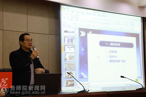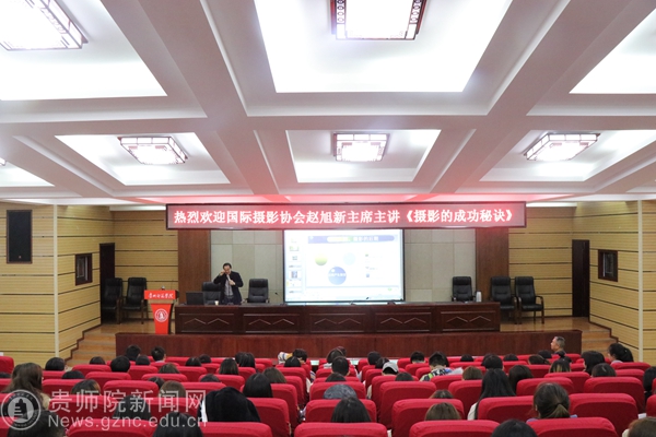 赵旭新老师自1985年涉足摄影至今,先后在国内外发表摄影作品及理论文章过千幅(篇),数百幅作品获奖。在他的讲座中浓缩了赵老师本人数十年的摄影经历及创作体会,并引用其他摄影人成功的案例,总结归纳了摄影方面成功的经验及教训。讲座内容包括如何为自己的摄影定位,如何掌握成功的办法,如何参加国际摄影展览及比赛并能够获奖或入选,如何以最短的时间获得成功,同时还分享了国际摄影获奖作品等内容。在讲座的过程中赵旭新还和学生进行了趣味互动,展示了由他摄影作品延展的文创丝巾。