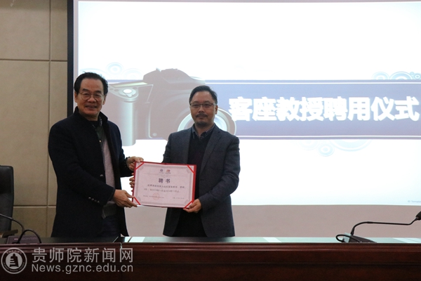美术与设计学院院长聂森表示,赵旭新的讲座从美学高度引导在场学生学习了摄影之道,特别是在摄影的传播手段和国家荣誉之间的关系阐述上观点独特,值得同学们好好学习。在讲座的最后,由聂森为赵旭新老师、周涛老师颁发了客座教授聘书。