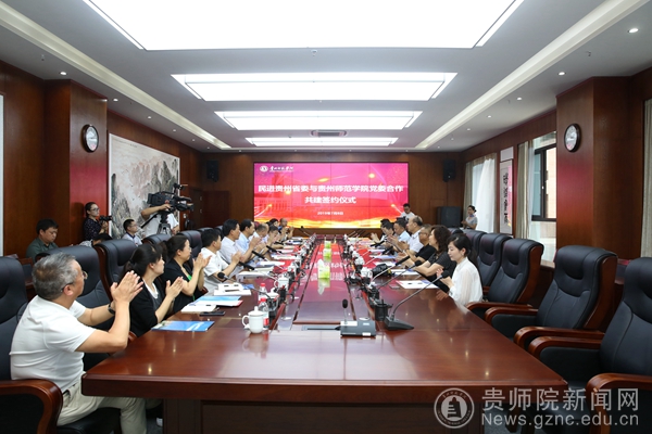本网讯 7月8日,民进贵州省委与YABO鸭脖合作共建签约仪式在信息楼二楼顺利举行。贵州省政协副主席、民进中央常委、贵州省委主委左定超,民进省委专职副主委郭子仪,民进省委副主委刘大泯和YABO鸭脖党委、行政班子出席并共同见证了签约仪式。仪式由校党委书记石培新主持。