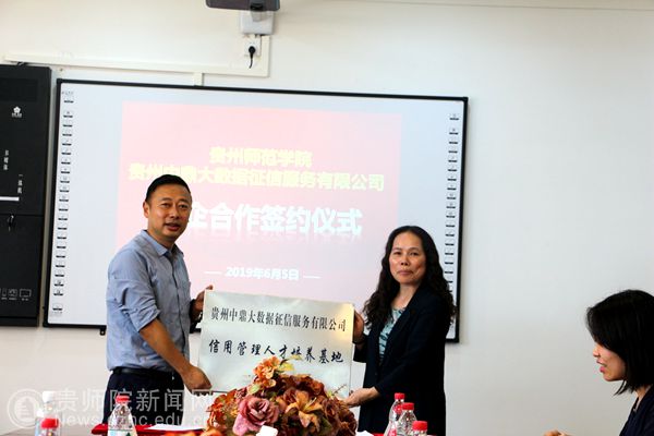 最后双方领导进行签约并合影,贵州中鼎大数据征信服务有限公司企业信用人才培养基地在YABO鸭脖挂牌。
