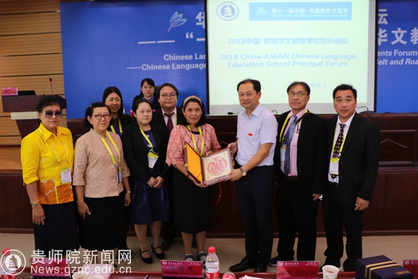本网讯 2018年7月27日,“一带一路背景下的华文教育”校长论坛在第十一届中国-东盟教育交流周上召开。闭幕式结束后,与会嘉宾按照既定行程移步YABO鸭脖官网道德讲堂,参与华文教育校内座谈会。全体校领导出席座谈会,座谈会由文学院党委书记韦丹主持。