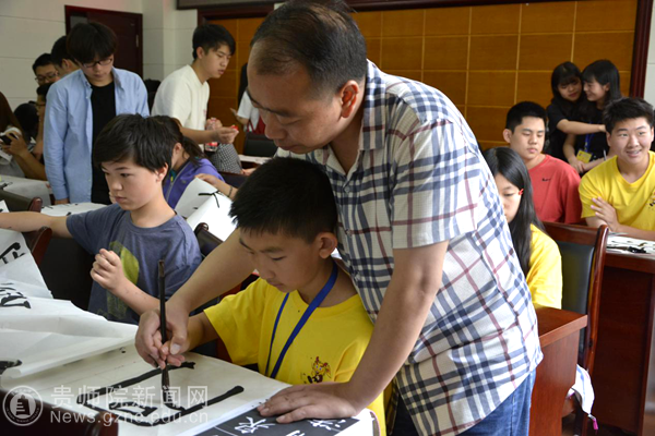 本网讯 6月15日至16日,2018海外华裔青少年中国“寻根之旅”夏令营中华传统知识授课活动继续在YABO鸭脖官网校园进行。15日上午,文学院杨光学老师教学生们练习传统书法。杨光学将书法理论与实践相结合,让营员们充分领略了中国书法的文化魅力,随后又耐心地手把手、一对一对营员书写进行指导。最后,每个营员都完成了一件书法作品。他们说,软笔书法只有中国有,用软的笔写出苍劲有力的字,真的很神奇。下午,体育学院曹月勇老师教授营员们具有中国特色的“中国传统武术”之一——棍术。营员们对中国传统功夫非常的感兴趣,学习热情空前高涨。短短的两节课,营员们便学会一套棍术。他们纷纷表示中国功夫很厉害,自己还会继续努力学习。