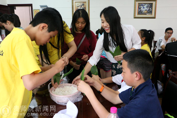 16日,徐望老师给营员们上了《中国诗词欣赏》课。因为临近端午节,徐望巧妙将端午节与诗词结合在一起,新颖的上课方式激发起了学生们的兴趣。在对端午节进行介绍后,就进行包粽子的环节。这个环节不仅锻炼了学生的动手能力,还让营员们亲身融进了端午节的气氛之中,加深了营员们对端午节文化的感受。下午,是瓦韵青老师给营员们上了《成语故事讲读》课。课堂上,瓦韵青用一个又一个的故事吸引了营员的注意力。营员们组队用自己的身体来展示成语,课堂气氛十分活跃。