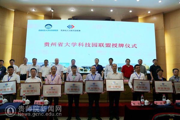 会上,来自中国国家大学科技园联盟的嘉宾向贵州省大学科技园联盟成员单位进行了授牌。