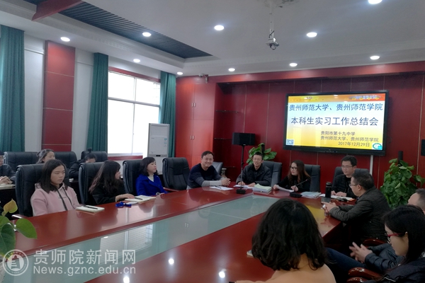 潘希兰首先对宋万琚、陈震等前来参加实习总结会表示热烈欢迎,对实习生的认真学习、踏实工作、无怨无悔的实习表现予以高度赞扬,对他们的实习收获表示由衷的祝贺,对实习生的努力和付出表示衷心的感谢,希望同学们与贵阳十九中学的领导和老师们保持联系,实习虽然结束,但情谊继续。