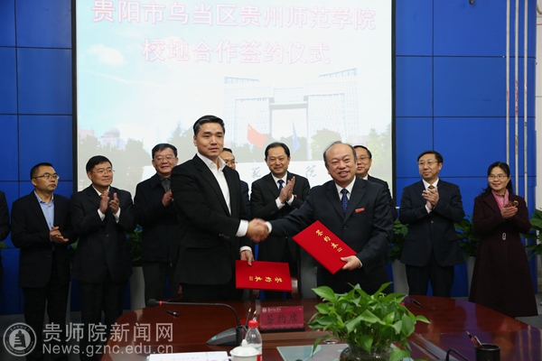 校长郁钟铭与乌当区人民政府常务副区长李成签订了校地合作框架协议