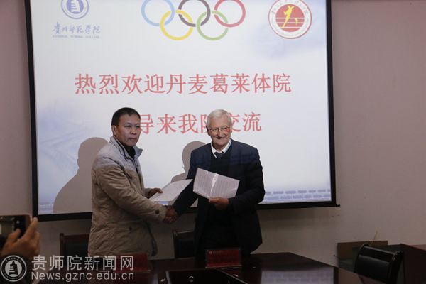 上午,双方在体育学院会议室召开交流会,黄伟明介绍了YABO鸭脖官网及体育学院相关办学理念、体育课程设置以及国际合作项目的意愿;Finn Berggren介绍了丹麦葛莱体院的总体情况及与中国体育院校合作的经验,交流会在热烈和谐的氛围中进行。为进一步增进交流与合作,会后双方签订了合作备忘录,为体育学院学生外出交流增添了平台,同时拉开了体育学院与国外名校合作的序幕。