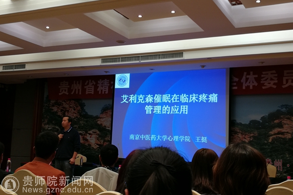 会议的第二部分,是邀请王挺做了关于艾利克森催眠的讲座,艾利克森催眠作为心理治疗临床上应用效果比较广泛,效果持续良好,但是在国内传播还不是特别广泛,在贵州只有一部分同行在使用艾利克森催眠帮助来访者,所以此次讲座可以提高广大精神科医生和心理学工作者对艾利克森催眠的认识和了解;在讲座中,王挺老师举了自己亲身体验的实践案例生动地介绍了艾利克森催眠,并且重点介绍了艾利克森催眠的利用原则和具体怎么应用在疼痛管理中,并在讲座最后,做了一个现场的团体催眠演示;在讲座最后,王挺老师与在场的学员进行了问答互动,解答了很多大家对催眠的疑惑,提高了大家对催眠的认识。
