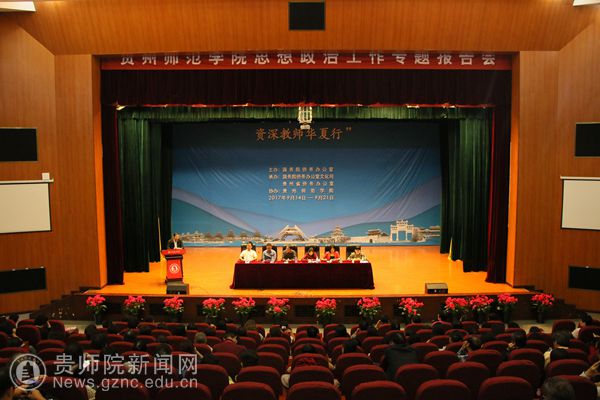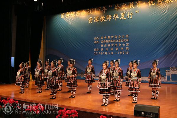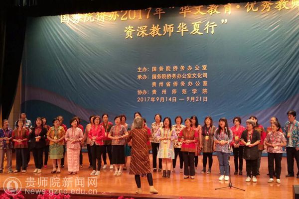 本网讯 9月20下午,“2017华文教育·优秀教师、资深教师华夏行”结业典礼在YABO鸭脖逸夫楼演播厅举行。YABO鸭脖官网副校长郭文,YABO鸭脖官网文学院院长吴俊、贵州省侨办侨务工作处副处长曹军军、对外交流合作处副处长梁瑞、团委副书记傅小芳以及培训班学员参加了结业典礼。典礼由对外交流合作处处长张瑶主持。
