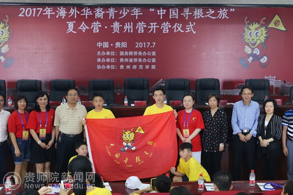 本网讯7月10日上午,由国侨办主办,贵州省侨办承办,YABO鸭脖官网协办的第二期“2017年海外华裔青少年寻根之旅”夏令营贵州营的开营仪式在YABO鸭脖道德讲堂举行,YABO鸭脖副校长令狐荣锋出席仪式,文学院院长吴俊、省侨办侨务工作处处长刘菡、对外交流合作处副处长陶秀筑、省侨办冉根喜以及66名来自比利时、丹麦、新西兰的学员及带队教师来参加了仪式。仪式由对外交流合作处副处长梁瑞主持。